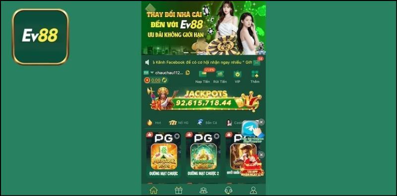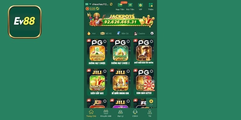 Slot game là một trong những sảnh có lượng người chơi đông đảo nhất tại EV88. Kho chủ đề từ cổ điển đến fantasy kết hợp hiệu ứng sắc nét tạo cảm giác giải trí mạnh mẽ. Cơ hội nổ thưởng và vòng quay tốc độ cao cũng giúp người chơi thêm hứng thú.