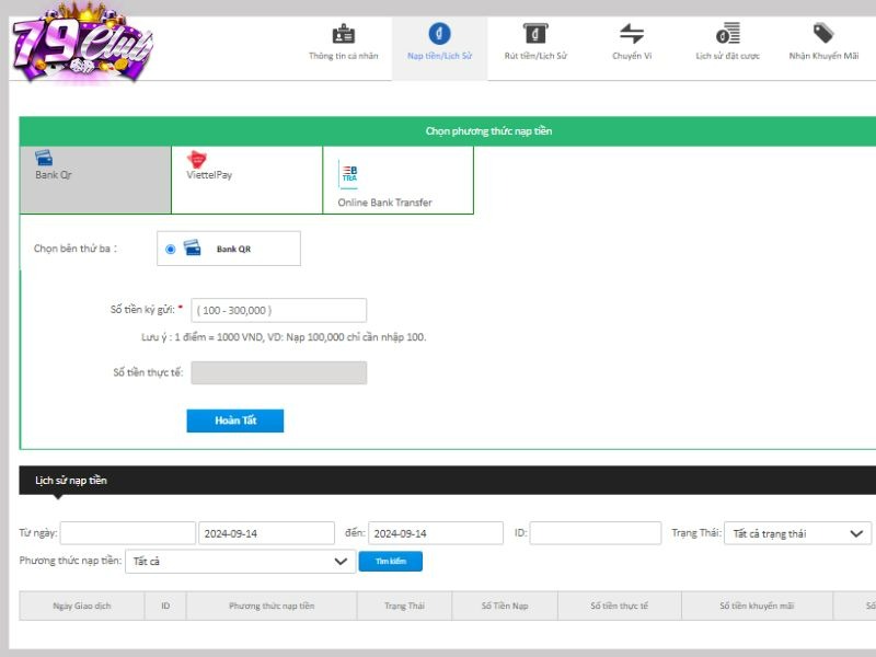 79Club cung cấp hệ thống tài chính an toàn, nhanh chóng và minh bạch, đảm bảo người chơi có thể nạp và rút tiền dễ dàng: