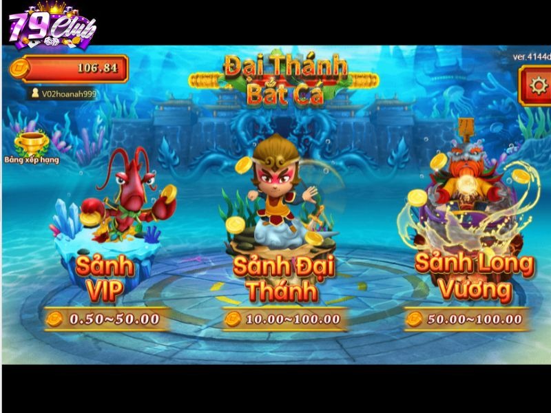 Tại 79Club, Đại Thánh Bắn Cá được chia thành nhiều sảnh chơi với mức cược khác nhau, phù hợp từ người mới chơi đến cao thủ: