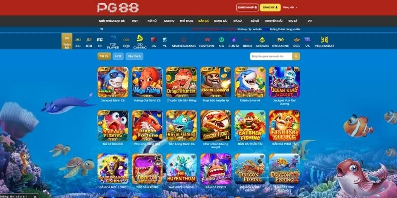 PG88 triển khai nhiều phiên bản bắn cá với độ khó và phần thưởng đa dạng, phù hợp với nhiều phong cách chơi. Dưới đây là 5 game bắn cá được ưa chuộng nhờ cơ chế hấp dẫn và tỷ lệ thưởng cao.