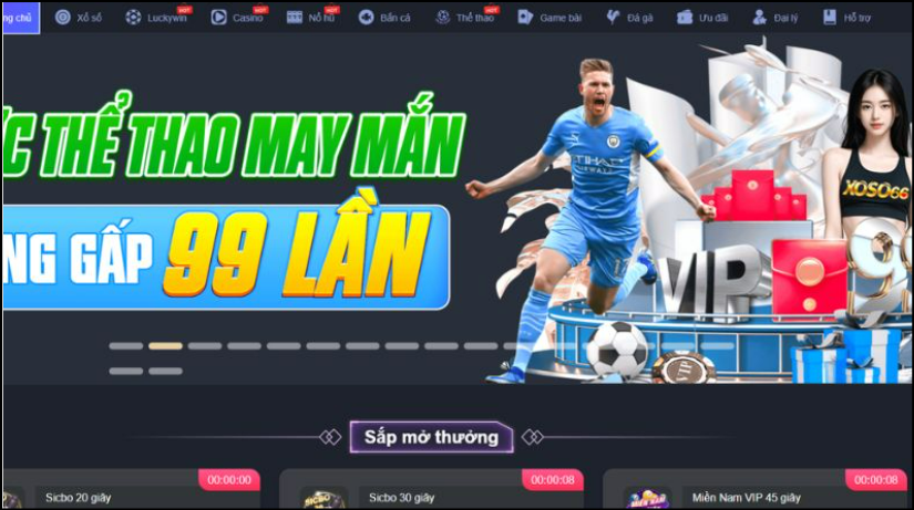 Xổ số là sản phẩm chủ đạo, bao gồm nhiều phiên bản truyền thống và hiện đại như xổ số siêu tốc, xổ số lô đề và keno VIP. Tỷ lệ trả thưởng cao giúp người chơi dễ dàng gia tăng cơ hội chiến thắng.